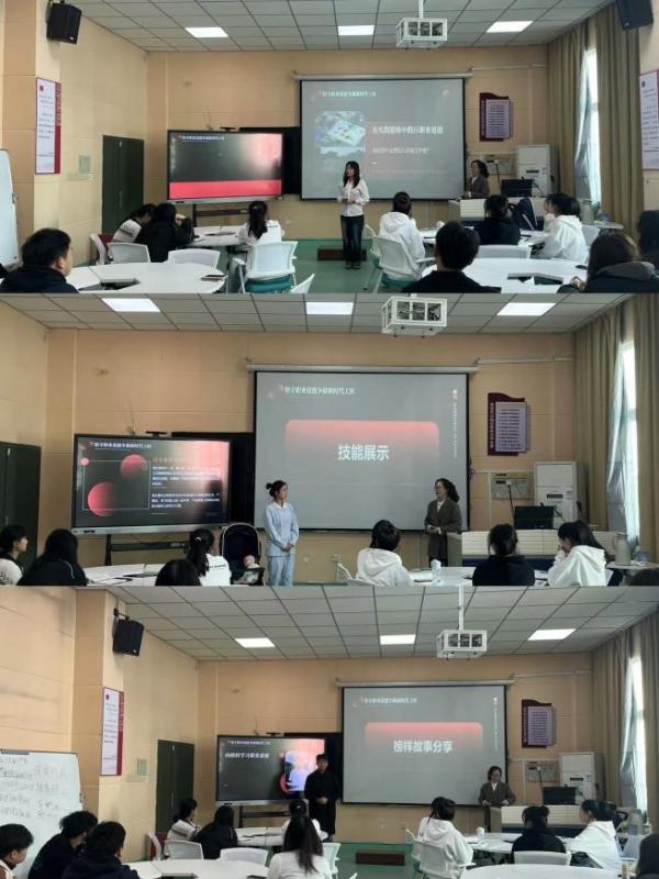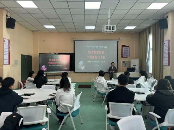 課堂聚焦教材第五章第三節“恪守職業道德,爭做新時代工匠”這一主題,吳燕娥老師通過層層設問來啟發思考,引導同學們從榜樣的力量、專業的培養、實踐的歷練等三個方面共同去探索如何恪守職業道德這一問題。劉小鵬同學分享了身邊的職業榜樣單文增老師,講述了單老師從“大學生”到“大先生”,從“追夢人”到“筑夢人”的感人故事。張宇商同學立足嬰幼兒托育服務與管理專業知識,現場向同學們展示了嬰幼兒人工喂養以及海姆立克急救法這兩項專業技能。朱晴同學從自身在彩繪工作室的實踐經歷出發,闡釋了如何通過參與志愿服務活動服務鄉村振興的同時提升自我的鍛煉與成長。