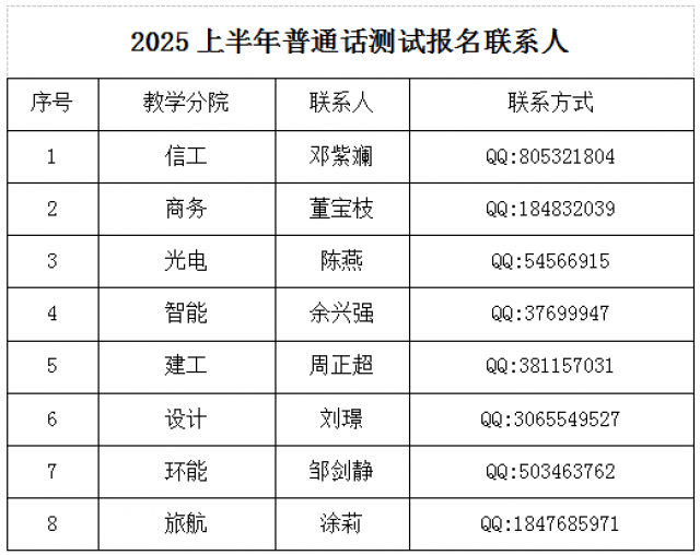 各教學(xué)分院教務(wù)科指定專人(見下表)組織開展該項(xiàng)工作,組織在校師生填寫(附件1),并于3月13日前將報(bào)名表(電子稿和紙質(zhì)稿)交普通話測(cè)試站(行政樓205)。