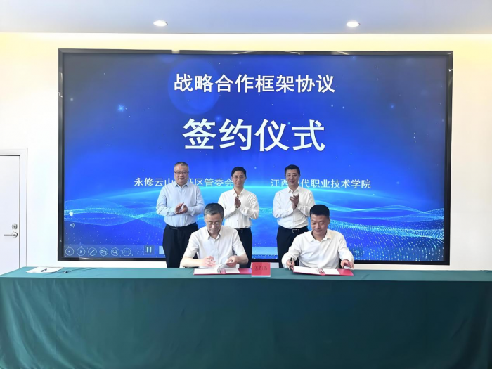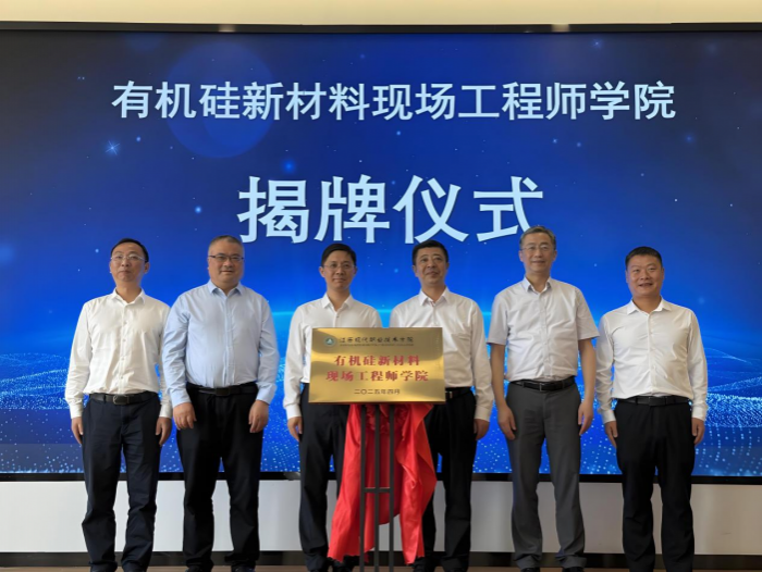 2025年4月25日,學院與永修云山經濟開發區管委會、江西贛江新區有機硅創新研究院共建的“有機硅新材料現場工程師學院”正式揭牌。永修縣委副書記、縣長朱超,學院黨委副書記、院長廖列法,江西省有機硅產業協會會長杜燕青,云山經濟開發區管委會主任朱志強,學院黨委委員、副院長朱建華,學院材料與化工分院副院長楊愛玉,江西贛江新區有機硅創新研究院總經理張琛,永修縣委縣政府相關部門以及園區31家企業代表共同見證活動。活動由云山經開區管委會黨工委書記戴彬主持。