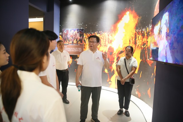 在金坪民族鄉新民村民族風情園,江西現代職業技術學院黨委書記陳飛以這片多民族共居的土地為實景課堂,為全體隊員講授了一堂生動的“行走的思政課”。他結合金坪鄉各民族交融共生的發展歷程與鄉村振興戰略要求,特別提及這里8個民族在長期共處中形成的互嵌式生活格局,引導學生要將專業知識用于解決多民族地區的實際需求——無論是幫果農拓銷路,還是教孩子學語言,都是在為鑄牢中華民族共同體意識添磚加瓦。
